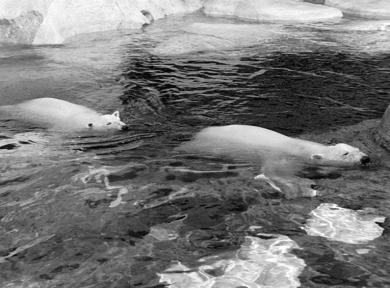 Stamina and resistance to the elements are among the main attributes of the polar bear. These bears can run rather fast and maintain speed for long periods, so stamina is probably their main strength. Of all bears, the polar bear is best adapted to living in water. As one can see from the Latin name Ursus maritimus, it is sometimes called a marine bear. Its great stamina is best seen in its long swims. The bear will swim across a fjord or strait without hesitation and research has shown that it can swim at 10 kph. There is a record of an adult polar bear having swum up to 100 km, where the swim took 11 hours! There is another confirmed record of a polar bear having swum 320 km, which is the longest recorded swim for a bear, but the duration of the swim is not known.